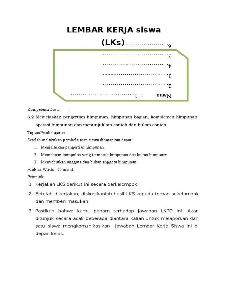 Lembar Kegiatan Siswa Adalah - Lembar Kerja Siswa Lks Silabus : Pengembangan lembar kegiatan siswa (lks) dan media penunjang materi ajar untuk melatihkan keterampilan proses sains.